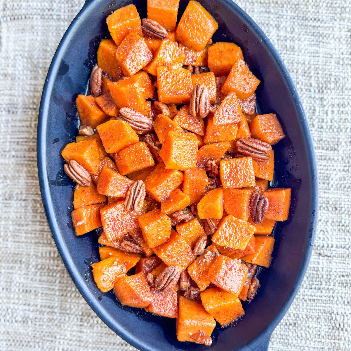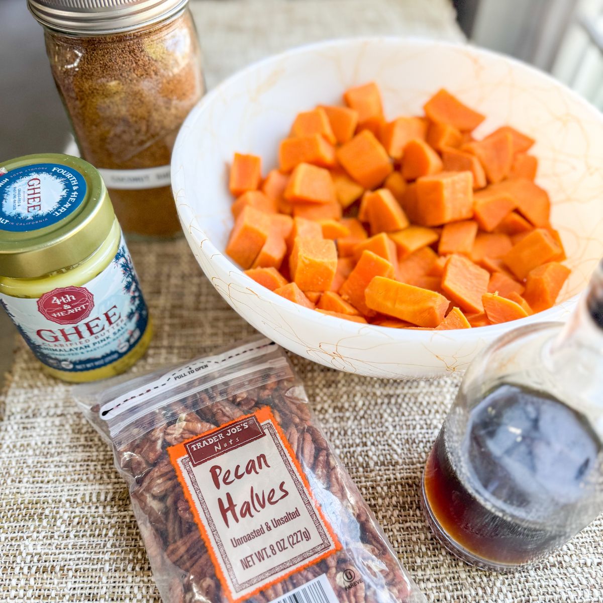 When making this ahead of time: be sure not to add the maple sugar and whole pecans as the sugar will melt into the warm dish and will not create that little bit of crunchy coating.