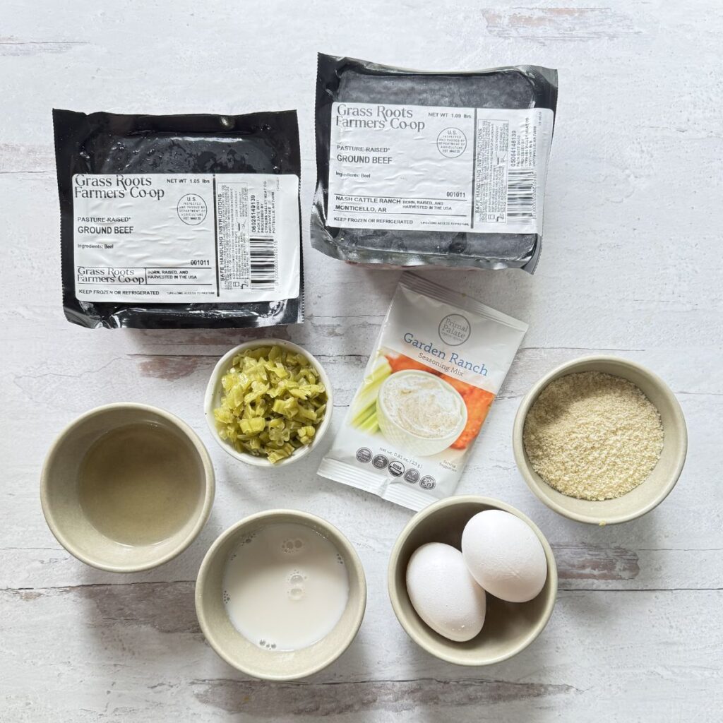 In a large bowl: whisk together the eggs, almond flour, almond milk, ranch mix, diced pepperoncini, and pepperoncini juice.