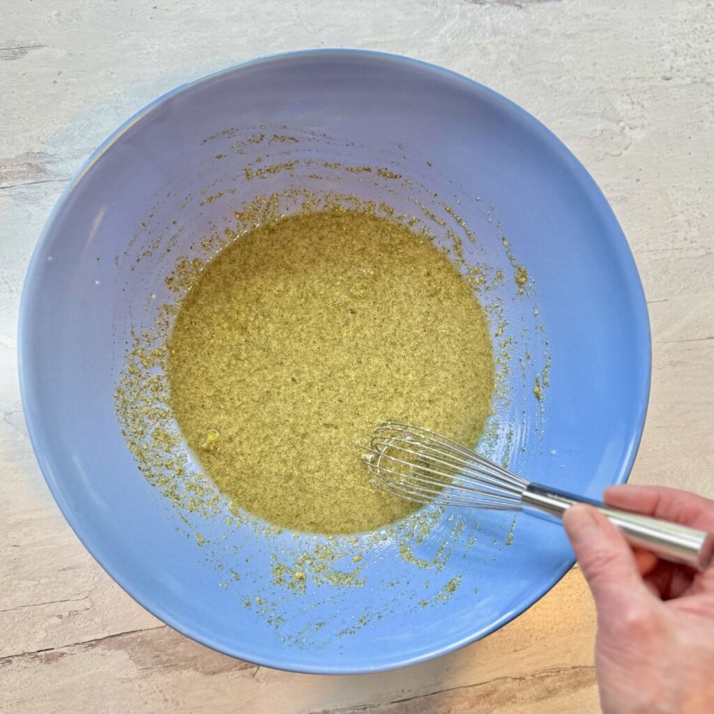 2. In a large bowl whisk together the eggs, almond flour, almond milk, ranch mix, diced pepperoncini, and pepperoncini juice.