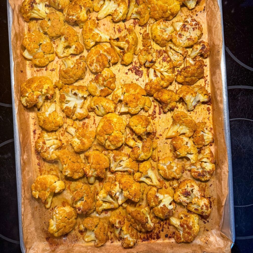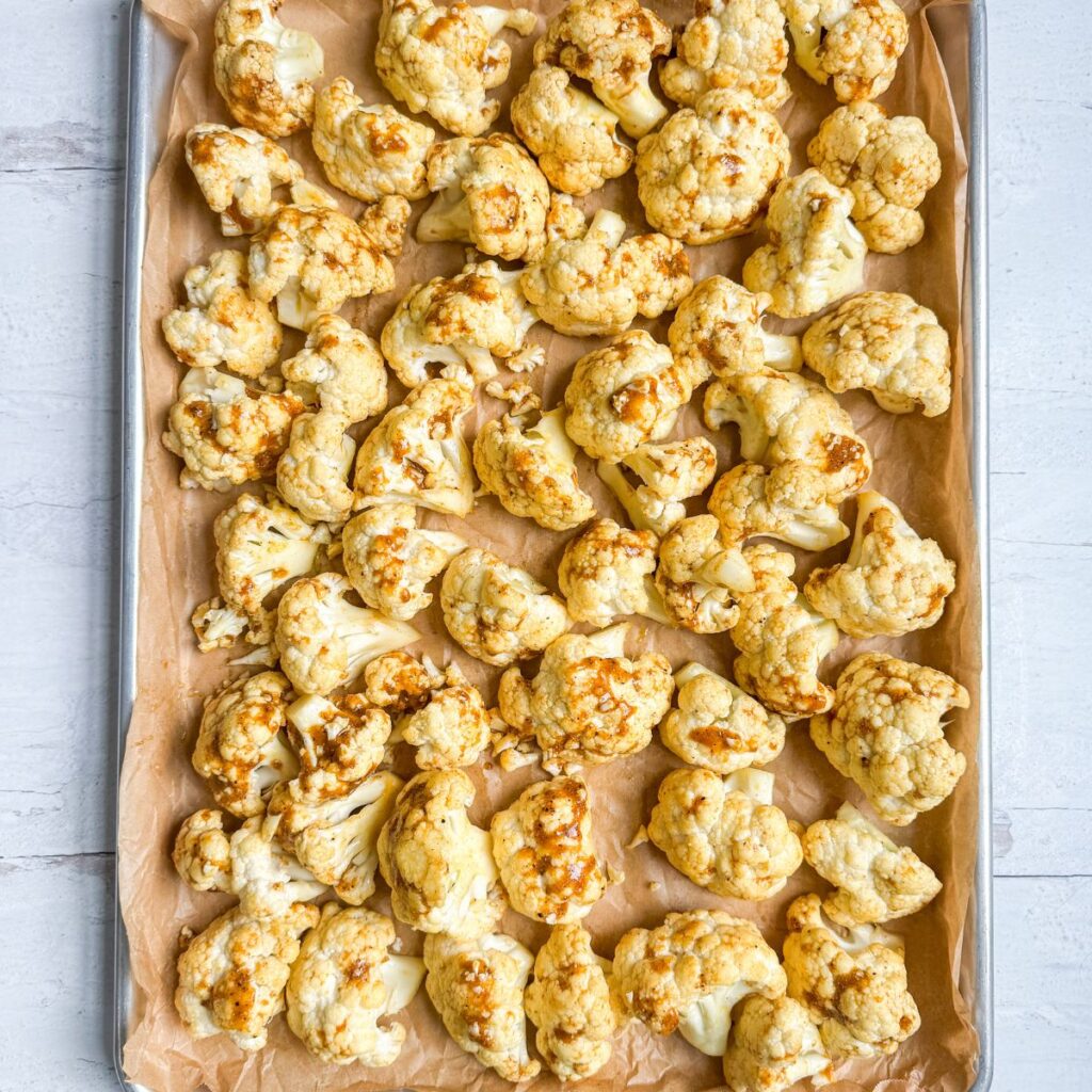 Place the florets: on the baking sheet. Making sure the cauliflower is spaced out ensures perfect caramelization for your curry honey roasted cauliflower dish.