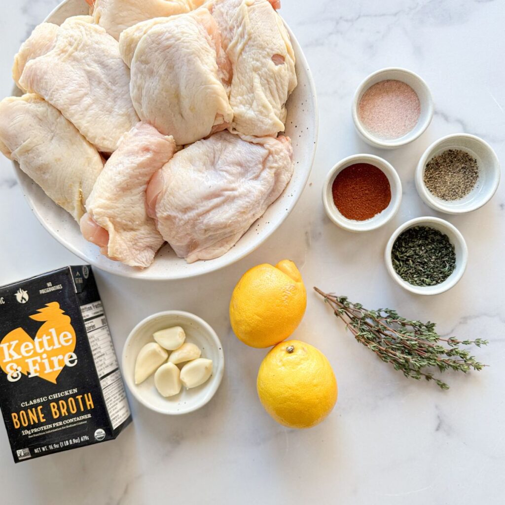 Chicken thighs: I love using chicken thighs because they always come out juicy and tender from the extra fat that comes from the thighs. I like Grass Roots Coop for my meat purchases.